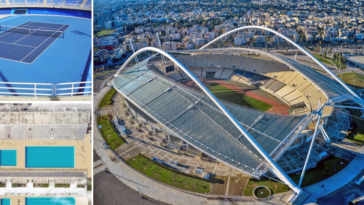 Οι Ολυμπιακές εγκαταστάσεις χτίστηκαν και κοσμήθηκαν για τους Ολυμπιακούς αγώνες του 2004. Το Στάδιο Καραϊσκάκη φτιάχτηκε για τους Πανευρωπαϊκούς του 1969 και αντικαταστάθηκε το 2004 για αποκλειστικά γήπεδο ποδοσφαίρου, που το παρέλαβε ο Κόκκαλής και στη συνέχεια ο Μαρινάκης για 49 χρόνια. Το Ολυμπιακό στάδιο της Καλογρέζας φτιάχτηκε το 1982 για τους Πανευρωπαϊκούς αγώνες και στη συνέχεια στολίστηκε με την στέγη Καλατράβα το 2002. H περιώνυμος στέγη, κόστισε 260 εκατ. ευρώ και υποτίθεται ότι τα λεφτά συντήρησης των γηπεδικών εγκαταστάσεων, θα προέρχονταν από τα ενοίκια του ΠΑΟ και της ΑΕΚ, που είχαν κοινό τόπο το Ολυμπιακό στάδιο.